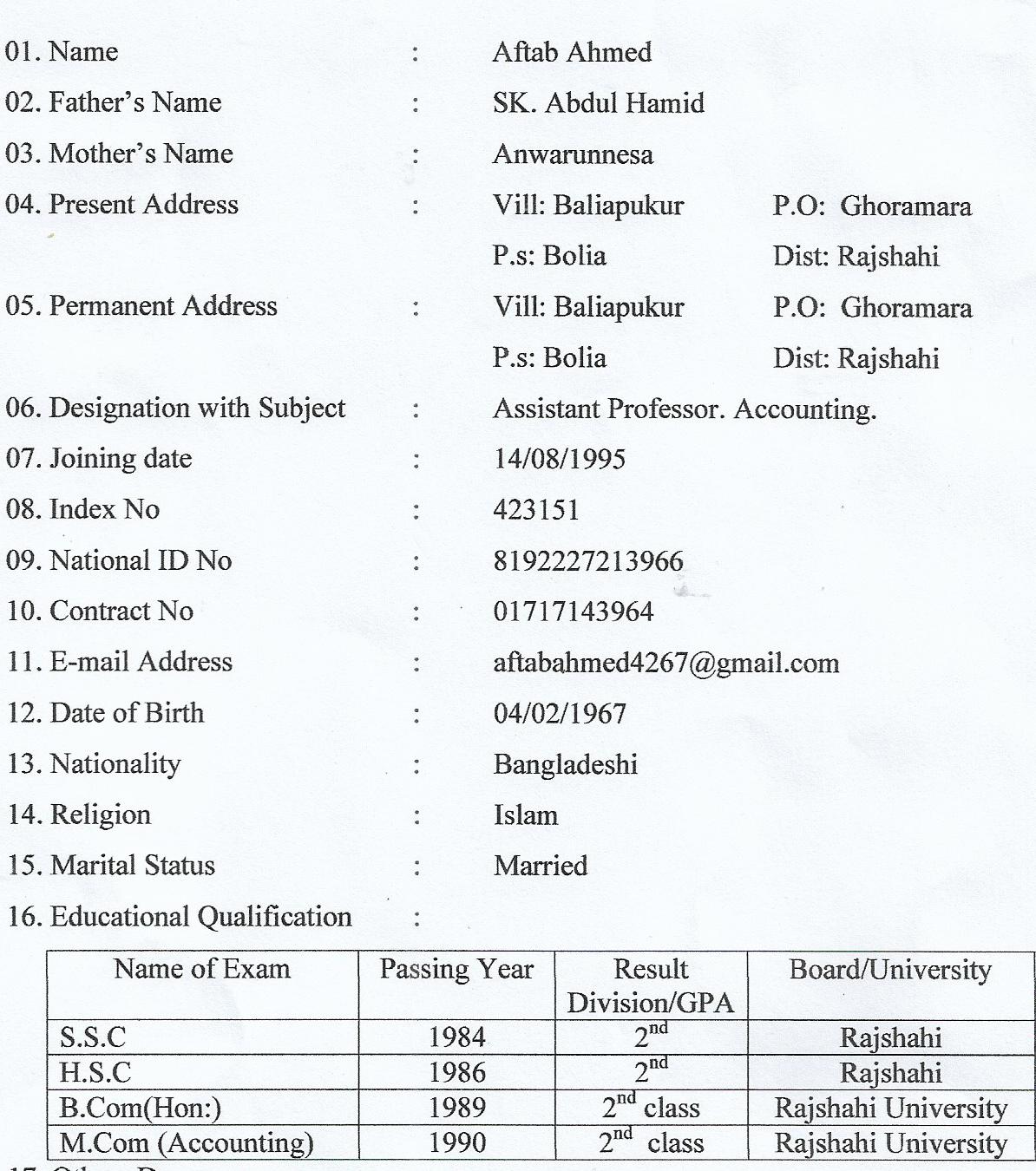 প্রাক্তন প্রতিষ্ঠান প্রধানের তথ্য