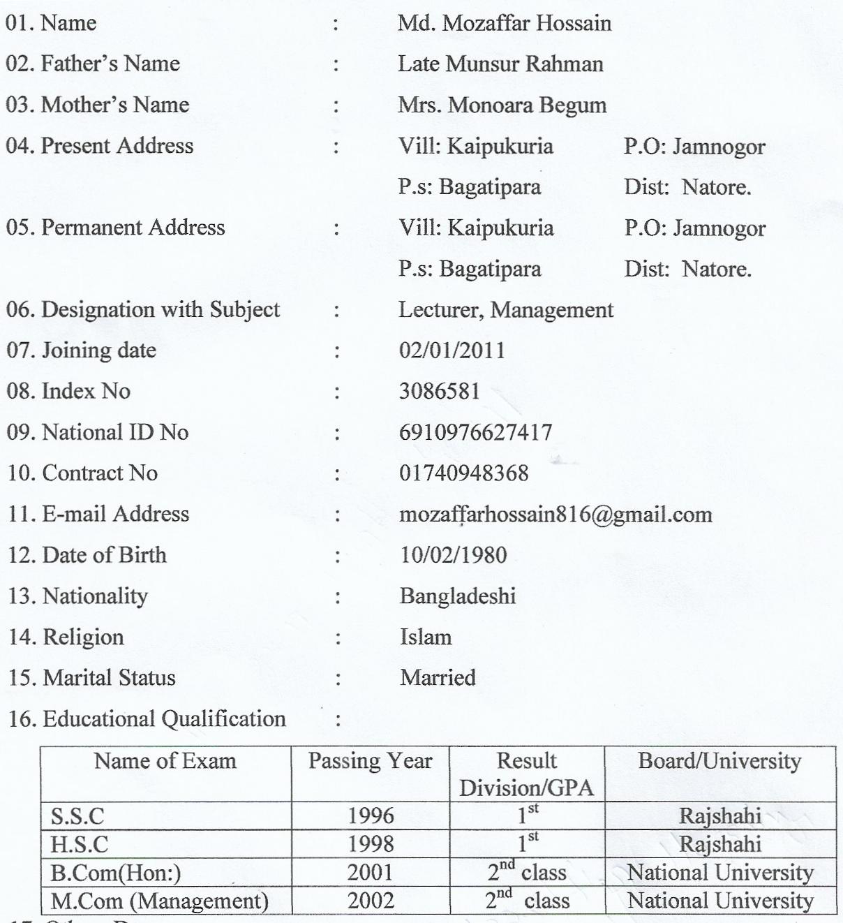 প্রাক্তন প্রতিষ্ঠান প্রধানের তথ্য