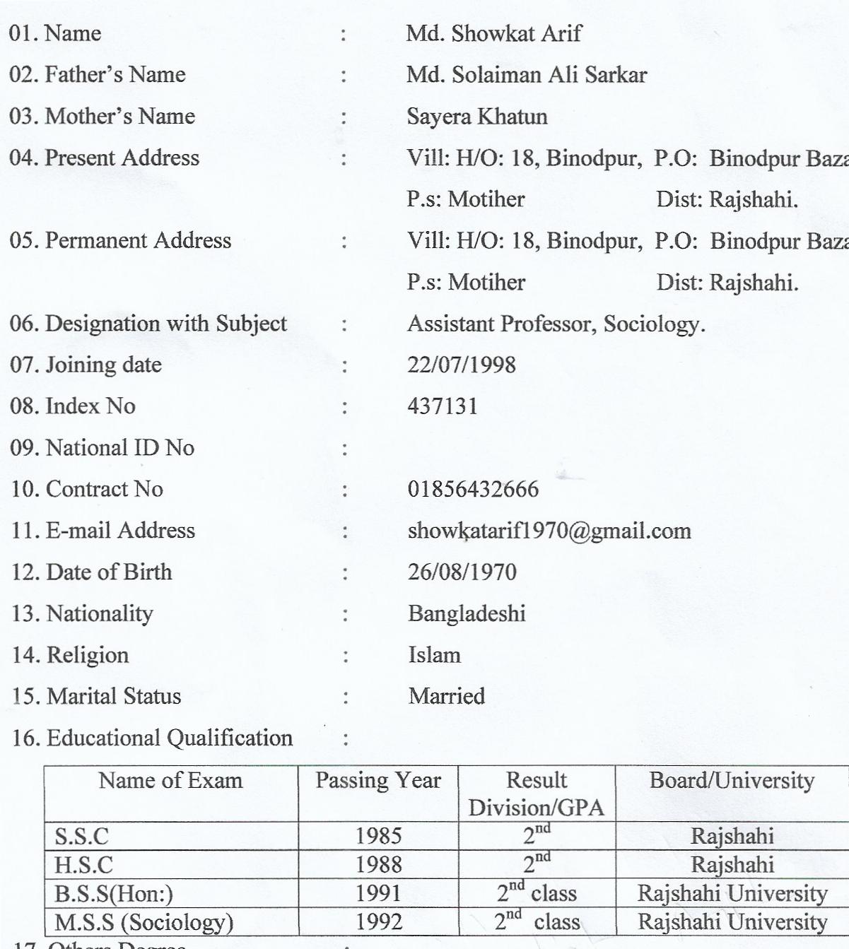 প্রাক্তন প্রতিষ্ঠান প্রধানের তথ্য